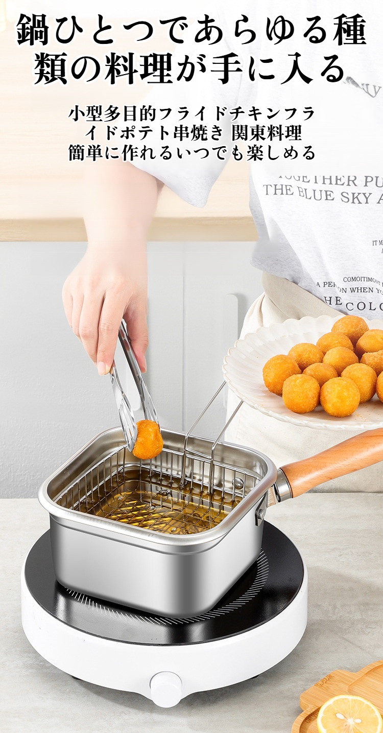天ぷら鍋 揚げ物鍋 揚げ物 鍋 天麩羅 油切り フライパン 天ぷら鍋 ミニ 家庭用 油鍋 ミルクポット 揚げ物 鍋 小さい