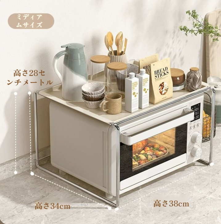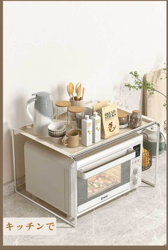 レンジ上ラック キッチン 伸縮式 トースターラック オーブンレンジラック 棚板高さ調節可 電子レンジ 台 収納