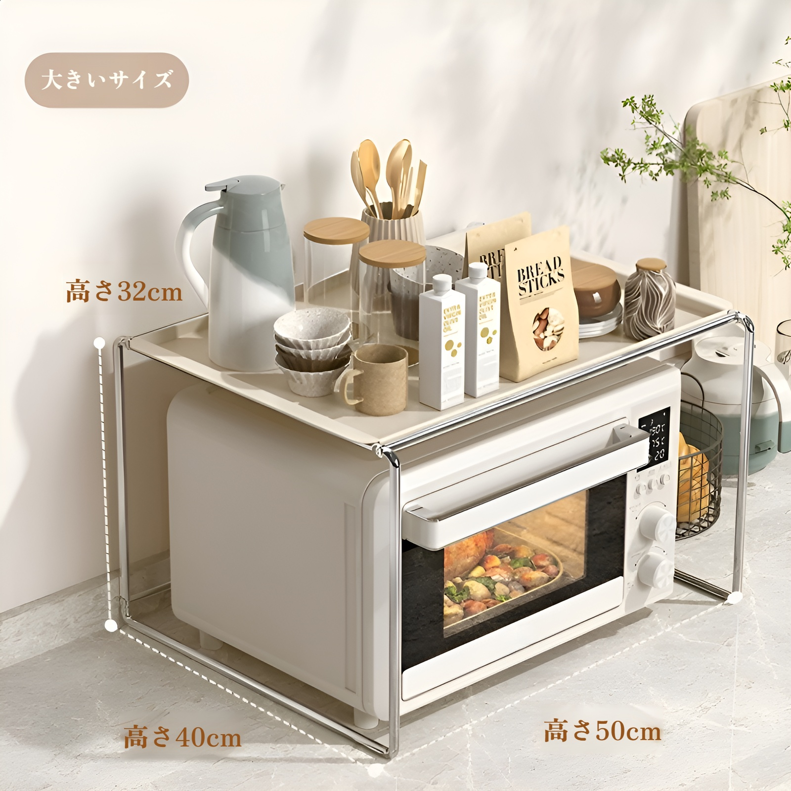 収納力抜群のオーブンレンジラックの使用例